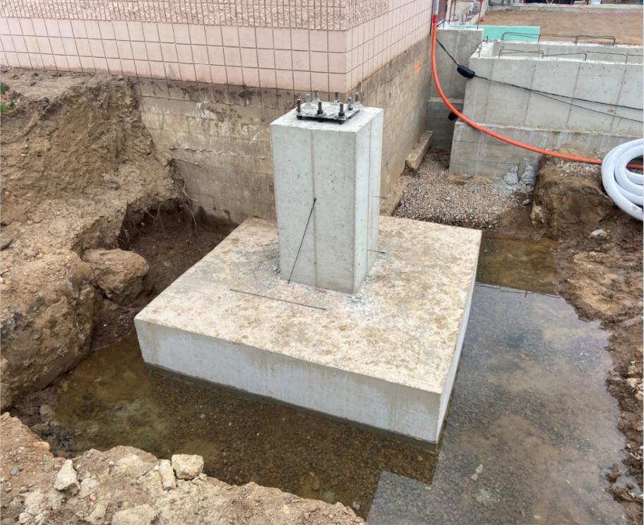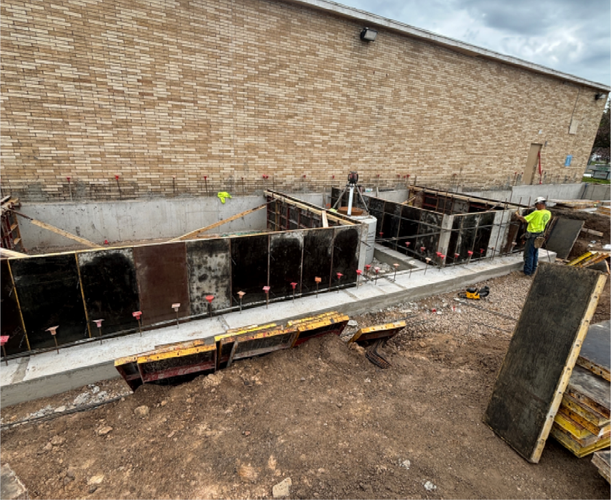 The concrete piers for supporting the addition vestibule steel have been poured.