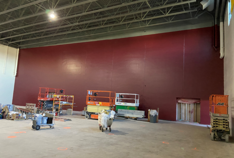 In the gym, the painting has been completed with the west gym wall receiving its final coat of Rib Lake Maroon and the gold acoustical panels starting on the north wall. Planning and coordination is ongoing as we prepare for gym equipment and gym floor installations.