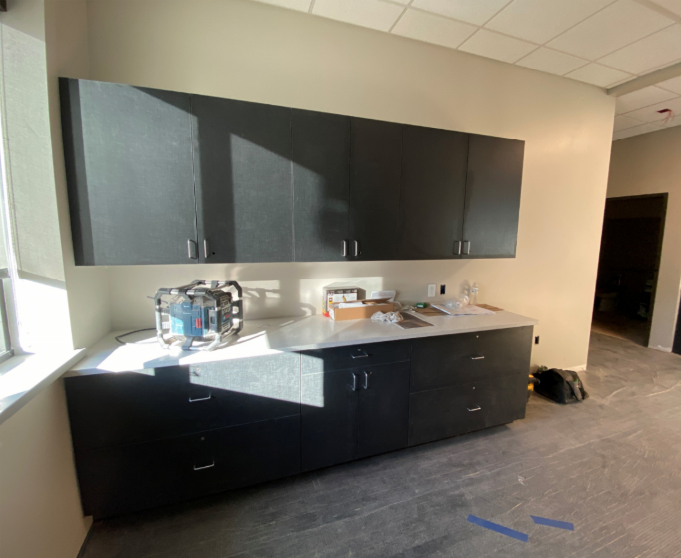 The new office areas is starting to wrap up! This week carpenters have been hard at work with the casework installation throughout the entire space. This area will soon be completed and ready for the addition turnover!