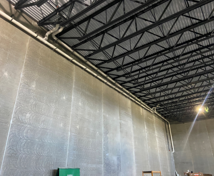 The air and vapor barrier has been completed on the north side of the building. The next step is metal panel installation.