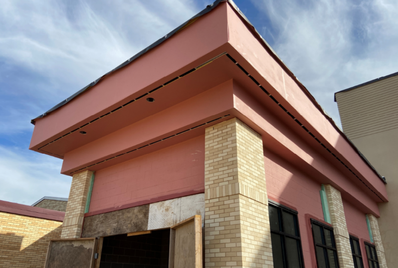 The exterior has continued to progress with brick wrapping up last week and the air and vapor barrier crew returning to finish up the north and south canopies. Soon we will see site concrete and asphalt on the north side of the building.